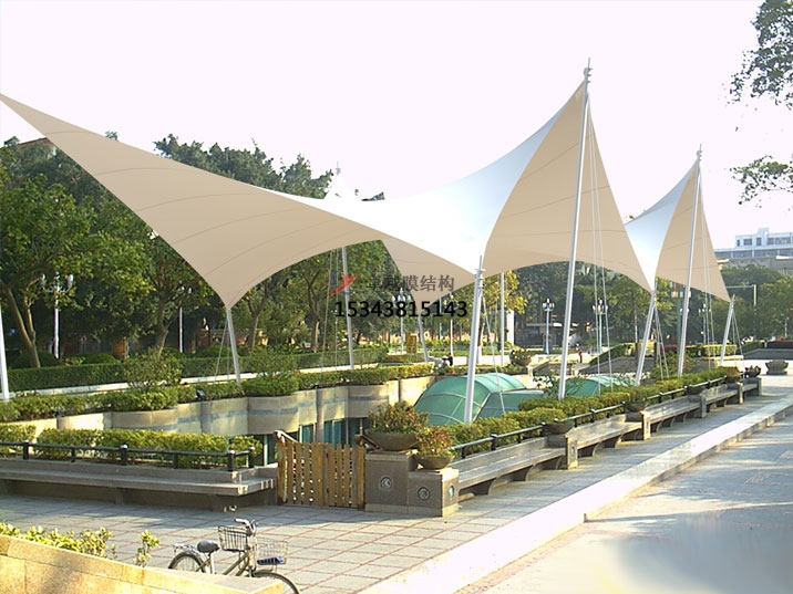 3、防火功用,即要求膜結(jié)構(gòu)材料是阻燃或是不行阻燃材料。這取決于膜結(jié)構(gòu)修建的功用及它地址的環(huán)境對(duì)膜結(jié)構(gòu)材料的防火功用要等級(jí)規(guī)則。