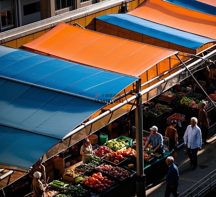 在城市的煙火氣味中,農(nóng)貿(mào)商場(chǎng)是不可或缺的存在,它承載著新鮮食材的匯聚與居民日常生活的快捷。但是,傳統(tǒng)農(nóng)貿(mào)商場(chǎng)頂棚在長(zhǎng)期運(yùn)用中暴露出許多問題,如年久失修易漏雨、空間布局局促、外觀陳腐等。膜結(jié)構(gòu)頂棚的出現(xiàn),宛如一陣清風(fēng),為農(nóng)貿(mào)商場(chǎng)帶來了全新的生機(jī)與革新。