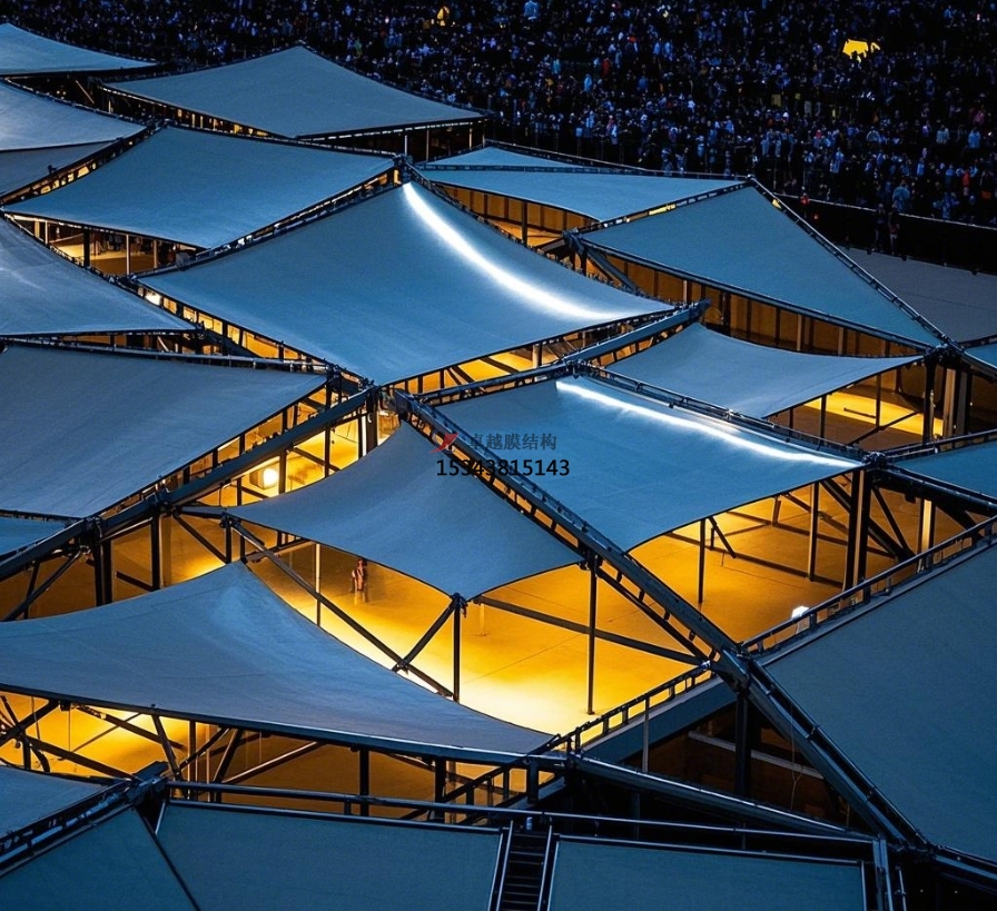 在各類演唱會、歌舞晚會、戲曲扮演等大型文藝扮演中,舞臺膜結(jié)構(gòu)的運(yùn)用極為廣泛。它可以依據(jù)扮演的主題和風(fēng)格,規(guī)劃出與之相匹配的造型,為扮演營造出共同的氣氛。例如,在一場經(jīng)典歌劇的扮演中,舞臺膜結(jié)構(gòu)采用了歐式古典修建風(fēng)格的規(guī)劃,膜材外表的紋路和色彩模擬出古老修建的質(zhì)感,調(diào)配精美的燈火作用,將觀眾帶入了歌劇所描繪的時代背景中,增強(qiáng)了扮演的藝術(shù)感染力。在流行音樂演唱會上,膜結(jié)構(gòu)舞臺則常常規(guī)劃成賦有現(xiàn)代感和科技感的造型,經(jīng)過與燈火、音響等設(shè)備的配合,為歌手的扮演打造出炫酷的舞臺作用,滿足觀眾對視覺和聽覺的兩層享用。