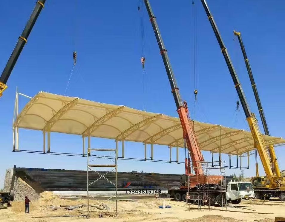 1、雖然膜結(jié)構(gòu)可以形成大面積的覆蓋空間,從方便膜面加工制作及安裝的角度來看,大覆蓋面積的膜結(jié)構(gòu)應(yīng)進(jìn)行適當(dāng)?shù)姆謪^(qū),以減小單片膜面的面積。將膜面分區(qū)的另一個(gè)好處是萬一以后發(fā)生膜材撕裂的情況,拆卸修補(bǔ)或更換的操作比較方便。