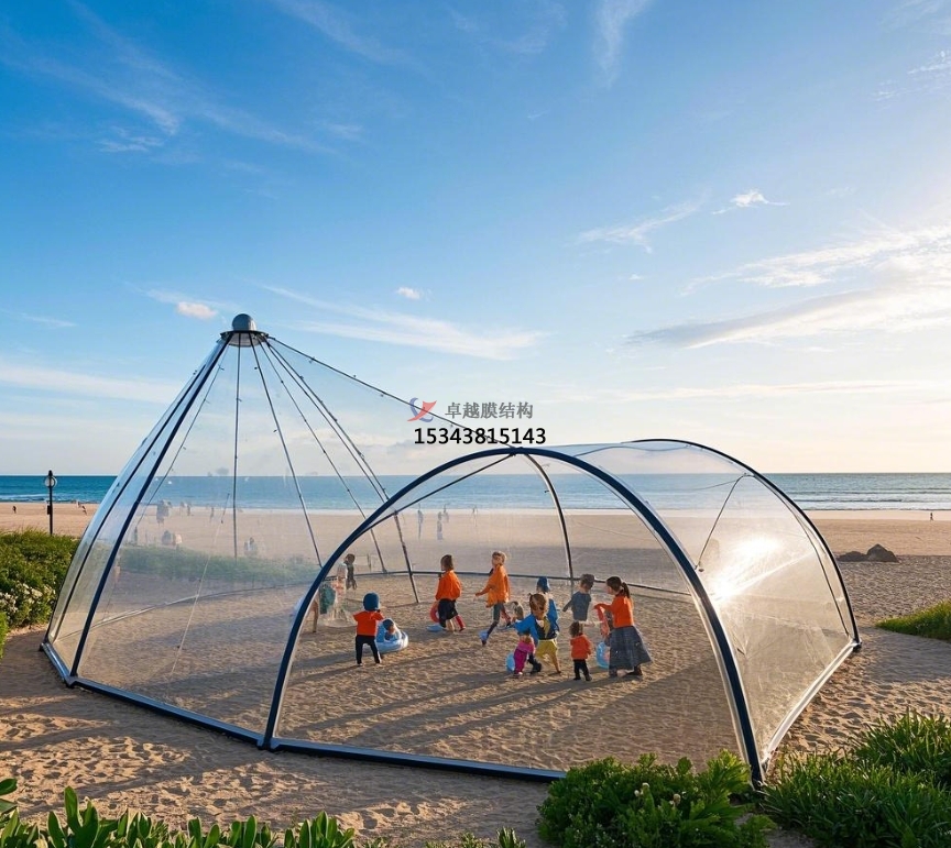 在廣場的兒童游樂區(qū),充氣式膜結(jié)構(gòu)因其輕巧安全、造型可愛的特性,成為理想的遮陽遮雨設(shè)施。膜材柔軟且具彈性,可減少兒童在游樂過程中因碰撞造成的傷害,同時選用環(huán)保無毒的膜材,充分保障兒童的健康安全。其色彩鮮艷的外觀與兒童游樂設(shè)施相匹配,營造出充滿童趣的游樂氛圍,讓孩子們盡情玩耍。