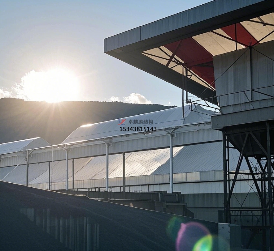 膜結(jié)構(gòu)在不同類型的煤場(chǎng)均有廣泛應(yīng)用。在煤礦儲(chǔ)運(yùn)中,封閉式煤場(chǎng)膜結(jié)構(gòu)告別了粉塵污染,提升了礦區(qū)形象,保障了煤炭資源的儲(chǔ)存安全?;痣姀S儲(chǔ)煤采用膜結(jié)構(gòu),可有效防自燃、防損耗,保障能源供應(yīng)穩(wěn)定。物流園區(qū)的煤場(chǎng)使用膜結(jié)構(gòu),能實(shí)現(xiàn)全天候倉(cāng)儲(chǔ),抵御雨雪侵蝕,降低煤炭熱值損失。港口碼頭由于需要快速周轉(zhuǎn)大宗煤炭,膜結(jié)構(gòu)的快速搭建和靈活擴(kuò)容特性,使其成為理想選擇 。