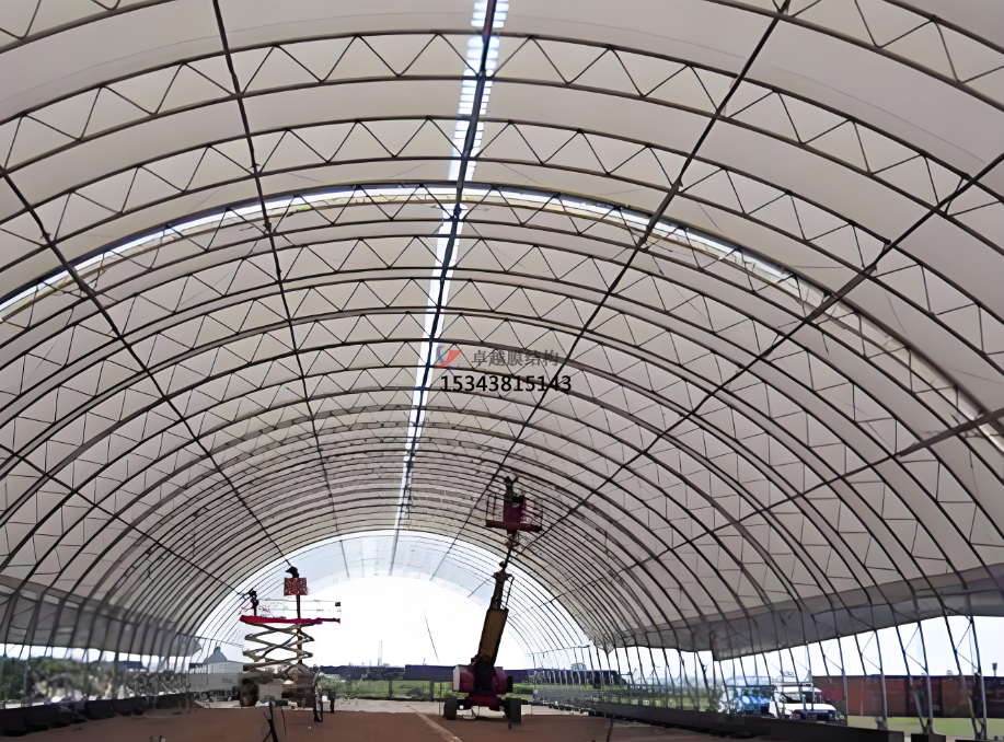 從建設(shè)成本看,膜結(jié)構(gòu)優(yōu)勢(shì)明顯。氣膜全封閉煤場(chǎng)由于內(nèi)部無(wú)梁無(wú)柱,膜材自重輕,降低了土建要求和成本,工期也可縮短至 2 - 4 個(gè)月,相比傳統(tǒng)鋼結(jié)構(gòu)可節(jié)省 25 - 60% 的造價(jià) 。并且,膜結(jié)構(gòu)安裝簡(jiǎn)便,可快速搭建,能為企業(yè)節(jié)省大量時(shí)間成本,快速投入使用。