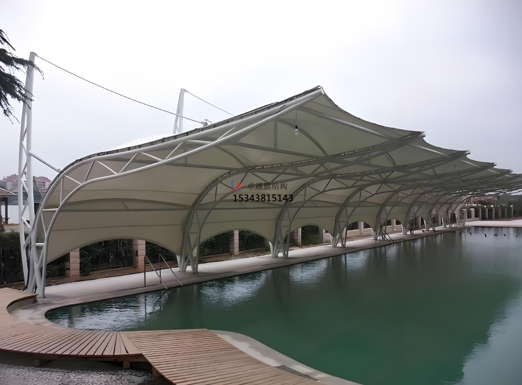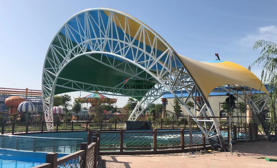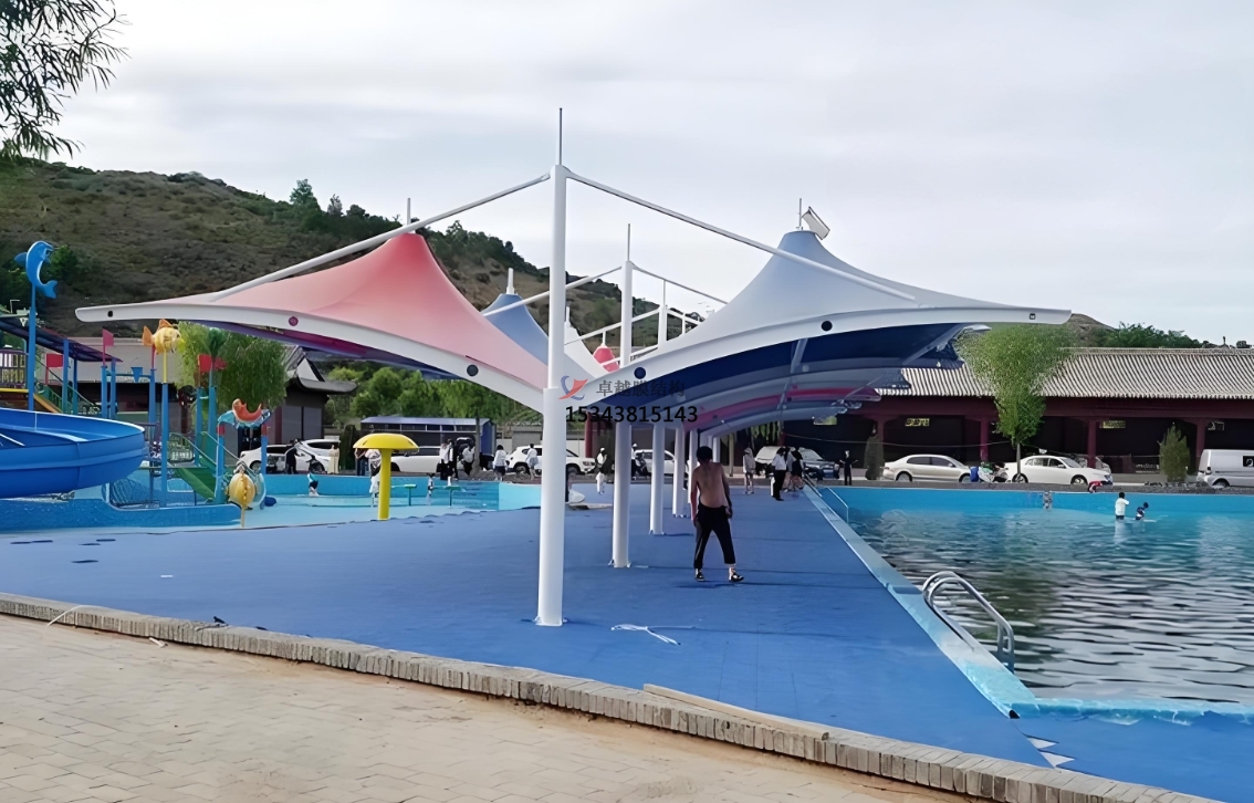 膜結(jié)構(gòu)遮陽棚是水上樂園中不可或缺的設(shè)計元素。它不僅能為游客提供遮陽、防雨的功能,還能與樂園的整體景觀融為一體,增添一道獨(dú)特的風(fēng)景線‌。