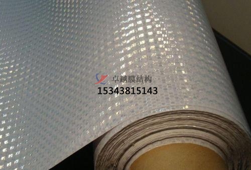 膜結(jié)構(gòu)車棚上面的膜材是一一種刀刮布,是一種化學(xué)合成材料,厚度比普通的布要厚。刀刮布的正面是光滑的,背面是粗糙的,顆粒狀比較厚分布布均勻。
