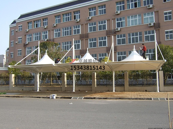 目前國內(nèi)大部分膜結構工程使用的都是聚酯纖維膜材料,即PVC聚酯纖維膜材,表面涂以PVDF聚氟化合物,增強了原有PVC膜材耐污染、抗老化的性能,膜材使用壽命增加到10-15年。聚酯纖維是膜建筑中應用更廣泛的纖維,并認為是建筑膜材標準產(chǎn)品。聚酯纖維拉伸強度高,彈性好。在拉伸屈服前,纖維具有較大的伸長變形能力,使得在安裝時可進行一定的調(diào)整。但日照將使聚酯纖維老化,彈性與強度等力學性能降低,所以很多建筑采用PTFE、ETFE等永久性膜材。