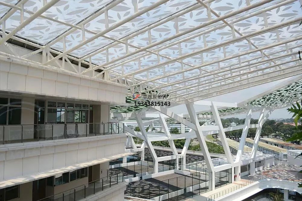 新加坡技術教育學院(ITE)校園內(nèi)的一系列ETFE屋頂是現(xiàn)代建筑想象力與創(chuàng)新力充分運用,結構范圍包括一對帶有定制印刷圖案的大型中庭,以及設置在建筑物之間的兩個較低的雙層ETFE氣枕結構。