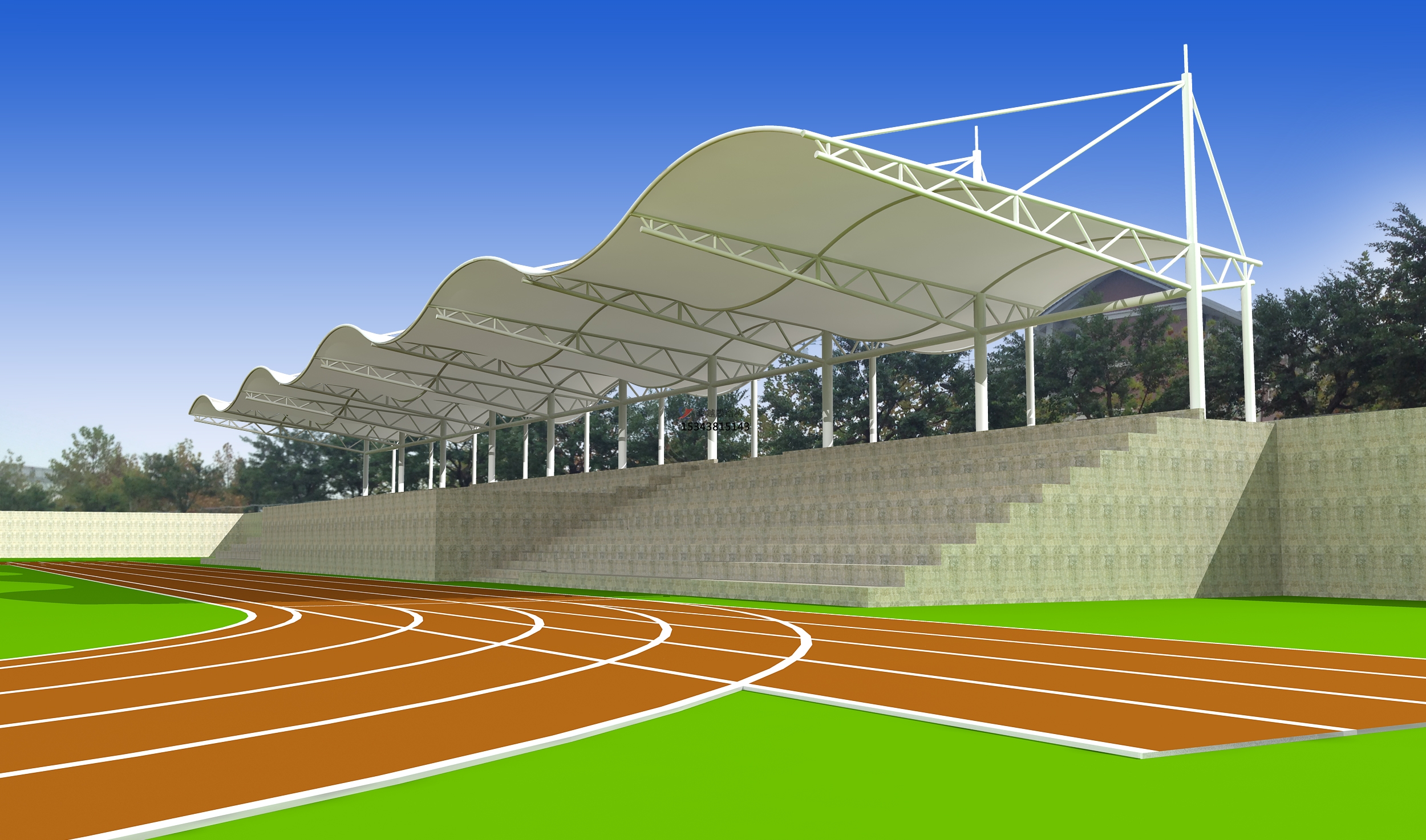 3、鄂州市雷山學(xué)校體育場看臺頂棚/運(yùn)動(dòng)場主席臺/風(fēng)雨操場雨棚生產(chǎn)廠家