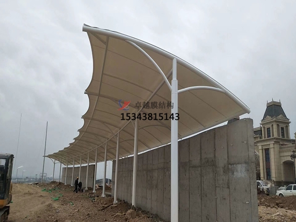 其二:膜材材質(zhì),PVC膜材與PVDF膜材作為兩種復(fù)合膜材,無論在防水、耐熱、抗腐中都具有一定的優(yōu)勢,但PVDF膜材要優(yōu)于PVC膜材。PVDF膜材是在PVC膜材上再作處理,一般PVC膜材的耐用年限是5-8年,改良后的PVDF膜材年限在10年以上,張拉性能、自潔性更好,表面灰塵會和雨水凝結(jié)成水珠,順勢流下,使膜材表面得到自然清洗。