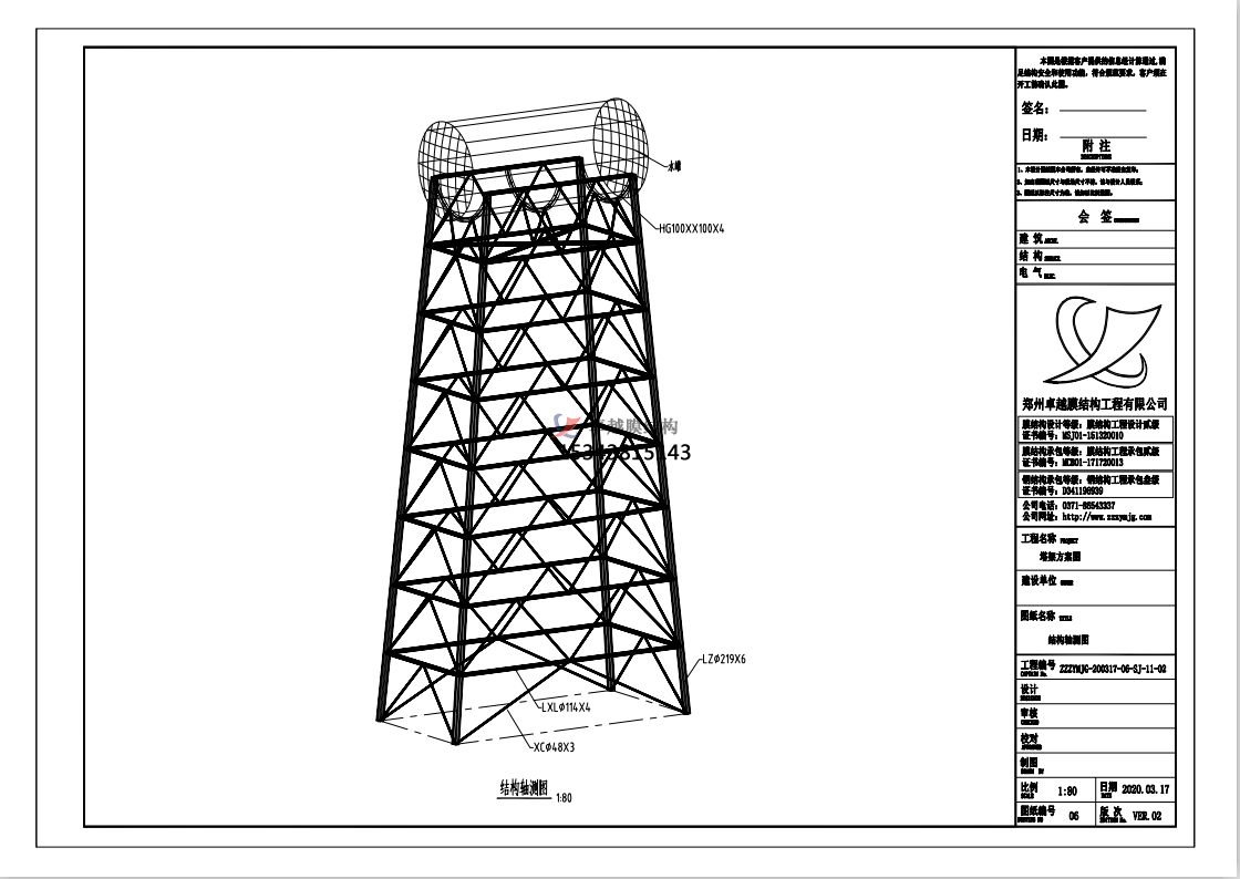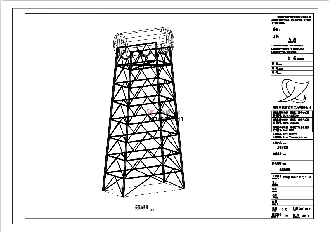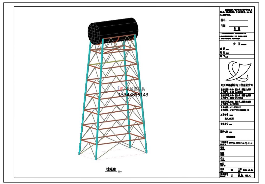 鋼結(jié)構(gòu)水塔三維模型圖,水塔一般居民區(qū)里蓄水作用,有些還是水廠生產(chǎn)工藝的一個重要組成部分。用于儲水和配水的高聳結(jié)構(gòu),用來保持和調(diào)節(jié)給水管網(wǎng)中的水量和水壓。主要由水柜、基礎(chǔ)和連接兩者的支筒或支架組成。在工業(yè)與民用建筑中,水塔是一種比較常見而又特殊的建筑物。它的施工需要特別精心和講究技藝,如果施工質(zhì)量不好,輕則造成永久性滲漏水,重則報廢不能使用。