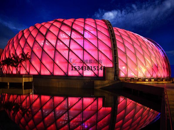 不僅如此,這種膜還具有自清潔功能,使灰塵不易附在其表面,清潔周期大約為5年。這種材料另一大優(yōu)點(diǎn)就是可在現(xiàn)場(chǎng)預(yù)制成薄膜氣泡,方便施工和維修。另外成本合理也是其極具競(jìng)爭(zhēng)力的另一優(yōu)勢(shì),覆蓋層加上結(jié)構(gòu)的費(fèi)用只有玻璃的一半,而使用壽命卻長達(dá)25年。