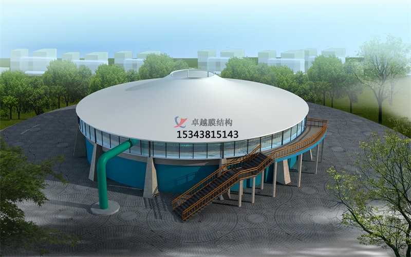 簡介:污水池膜結構加蓋技術通常采用鋼支撐反吊UV膜結構,它的巧妙之處在于“反吊”,采用了抗腐蝕能力很強的UV膜材(氟碳纖膜)把廢氣罩住,鋼結構在外面將膜懸吊,這種加蓋工藝可以解決鋼結構由于與腐蝕性氣體接觸而帶來的腐蝕問題,發(fā)揮了鋼結構的性能,實現(xiàn)了結構骨架與覆蓋材料的完美結合。
