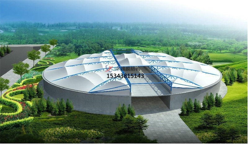 3、跨度大:由于膜材自重輕,而抗拉強度很大,膜結構可以從根本上克服傳統(tǒng)結構在大跨度(中間無支撐)建筑上實現(xiàn)所遇到的困難,適于大跨度的池體;