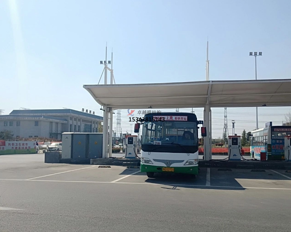 膜結(jié)構(gòu)車棚在此發(fā)揮了重要作用。一般采用骨架式,先用鋼材制成骨架,然后安裝膜材,通過加強構(gòu)建(鋼索、鋼柱)使其內(nèi)部產(chǎn)生一定的張力行程車棚形狀,能夠承受一定的風(fēng)載荷跟雪載荷。使用張拉式的也比較多。也有使用充氣式的,這種比較高端維護成本比較高使用比較少。
