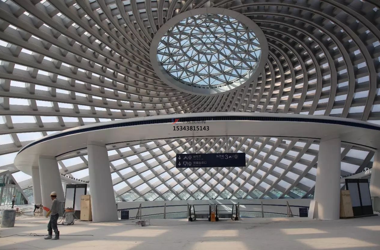 膜結構頂棚能夠呈現(xiàn)出奇特優(yōu)美的空間效果,如盛開的花瓣、玉蘭花蕊等形象,為高鐵站增添藝術氣息。