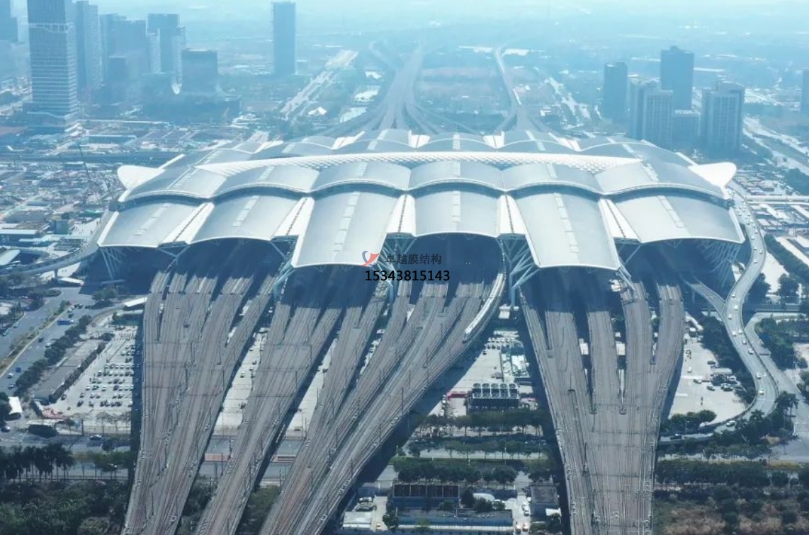 結構輕盈:膜材料自重輕,配合高強度的輔助結構,如鋼架、鋼索等,能夠輕松覆蓋大跨度空間,滿足高鐵站對空間的需求。
