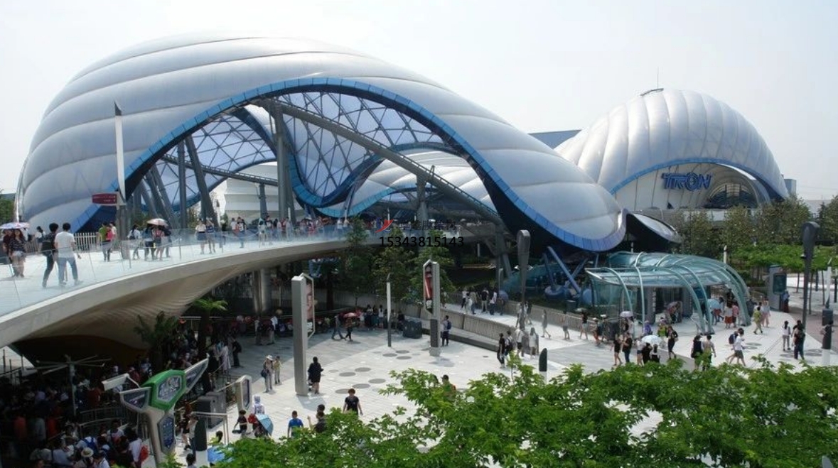 膜材可以根據(jù)設(shè)計(jì)需求進(jìn)行染色,呈現(xiàn)出各種豐富的色彩。在高鐵站的設(shè)計(jì)中,膜結(jié)構(gòu)的色彩往往與整體建筑風(fēng)格相協(xié)調(diào)。例如,一些高鐵站采用了與主體建筑色調(diào)相近的膜材顏色,營造出和諧統(tǒng)一的視覺效果;而在一些追求個(gè)性與活力的高鐵站,鮮艷的彩色膜結(jié)構(gòu)則成為建筑的點(diǎn)睛之筆,如廣州南站的部分膜結(jié)構(gòu)采用了醒目的藍(lán)色,在陽光下格外耀眼,為高鐵站增添了一份獨(dú)特的魅力。