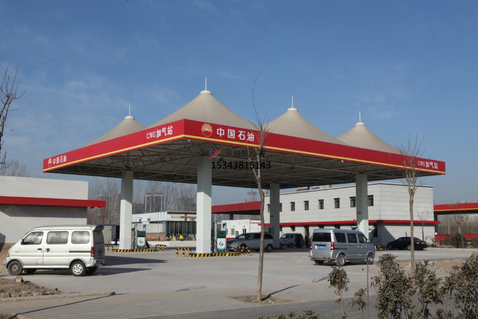 加油站膜結(jié)構(gòu),一般是指安裝在加油站的膜結(jié)構(gòu)頂棚。膜結(jié)構(gòu)頂棚因其自重輕,具有良好的受力特點(diǎn),所以成為大跨度空間結(jié)構(gòu)的主要形式之一,加油站膜結(jié)構(gòu)也屬于其范疇。