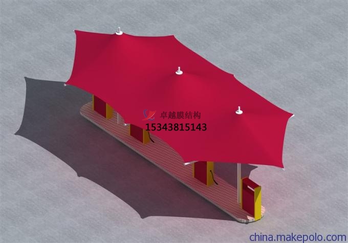 張拉膜雨棚/加氣站頂蓋主要采用鋼結(jié)構(gòu)做骨架支撐結(jié)構(gòu),高自潔建筑膜材做屋面材料防水材料,設(shè)計美觀大方,結(jié)構(gòu)安全穩(wěn)定,使用壽命可達(dá)15年到30年。廣泛應(yīng)用在于各類大小加油站和加氣站。卓越張拉膜雨棚工程是較早年開展張拉膜設(shè)計施工的專業(yè)廠家,擁有各類張拉膜設(shè)計施工總承包資質(zhì),現(xiàn)在為大家介紹一下我司在鄭州周邊地區(qū)完工的一批張拉膜雨棚工程案例,我司先后在鄭州附近地區(qū)完工了中國石化鄭州柳林加油站張拉膜雨棚頂蓋、鄭州東服務(wù)區(qū)中國石化加油站張拉膜雨棚遮陽篷、中國石油加油站(天然氣股份有限公司河南鄭州第十加油站)張拉膜雨棚等一批完工項目,給大家簡介一下: