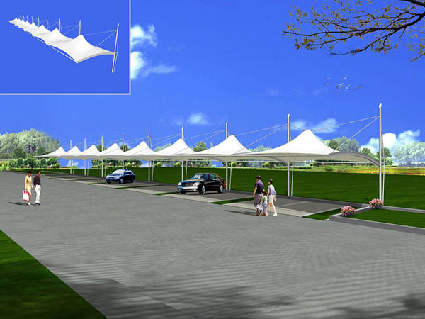 膜結(jié)構(gòu)車棚實用和觀賞性: 使用膜結(jié)構(gòu),那么就不能簡單只是搭一個棚子,是選擇張拉式的還是拱形還是冒頂,需要提前跟設(shè)計師溝通!