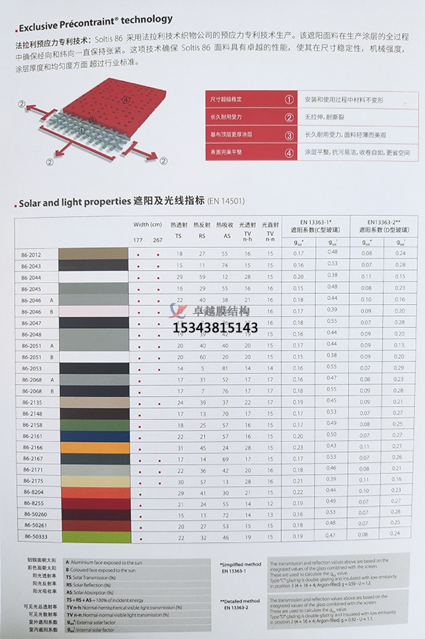 法拉利膜材十多年來,法拉利(PVDF)表面處理的復(fù)合膜材被應(yīng)用在全世界重要的織物建筑工程中?,F(xiàn)在,第代膜材再次確認了這一出眾材料性能的更新發(fā)展。法拉利研發(fā)了第代材料正是為了滿足建筑師和業(yè)主在新世紀之初對于織物建筑提出的要求。這一 全新的膜材得益于更新的科研技術(shù),即將PVDF和硬化介體完美地結(jié)合。這種特殊的結(jié)合明顯地提高了材料的機械強度、使用壽命,并能長期保持織物建筑的原始 美觀。第代膜材在積累了10多年的經(jīng)驗的基礎(chǔ)上,可以提供專業(yè)保證。法拉利現(xiàn)在能夠根據(jù)要求和每個項目的具體情況,提供12年質(zhì)量保證 (PRECONTRAINT702除外)。