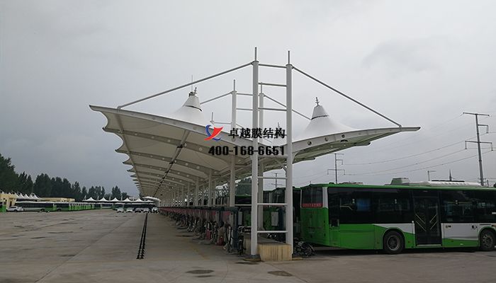 交通設施膜結構/汽車站/火車站/飛機場膜結構適用于:公交車膜結構站臺,新能源電動公交車膜結構充電樁車棚,汽車站膜結構大門,火車站膜結構等待區(qū),火車站膜結構大門,飛機場膜結構大門,飛機場膜結構等待區(qū)等等。膜結構:先用鋼材制成骨架,然后安裝膜材,通過加強構建(鋼索、鋼柱)使其內部產生一定的張力行程車棚形狀,能夠承受一定的風載荷跟雪載荷。