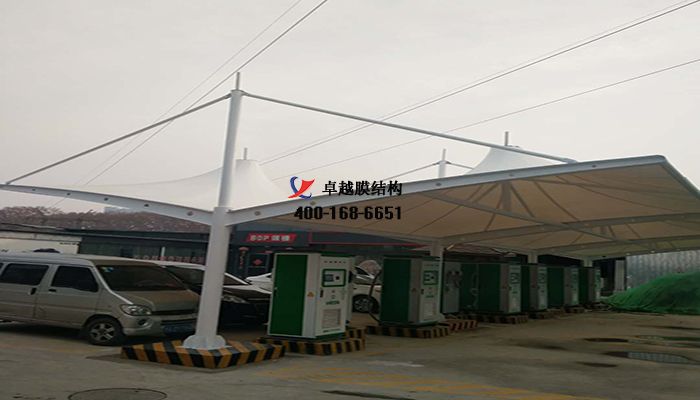 一般采用骨架式,先用鋼材制成骨架,然后安裝膜材,通過加強構建(鋼索、鋼柱)使其內部產生一定的張力行程車棚形狀,能夠承受一定的風載荷跟雪載荷。使用張拉式的也比較多。也有使用充氣式的,這種比較高端維護成本比較高使用比較少。