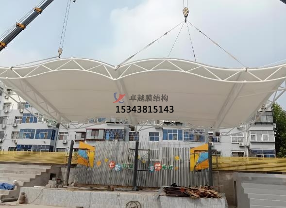 看臺張拉膜的應(yīng)用場景:體育場館,?露天劇場,景觀廣場,設(shè)計與施工。在體育場館中,看臺張拉膜不僅為觀眾提供了舒適的觀賽環(huán)境,還成為了場館的一道亮麗風(fēng)景線。在露天劇場中,看臺張拉膜不僅提供了遮陽擋雨的功能,還增強了劇場的視覺效果,提升了觀眾的觀演體驗。在景觀廣場中,看臺張拉膜以其獨特的造型和輕盈的材質(zhì),為公共空間注入了無盡的活力與魅力??磁_張拉膜的設(shè)計與施工需要專業(yè)的技術(shù)支持。一些公司提供從設(shè)計、加工到安裝的一站式服務(wù),確保每個項目都能達(dá)到高品質(zhì)標(biāo)準(zhǔn)。
