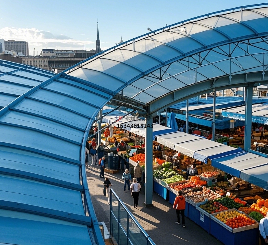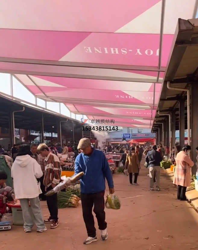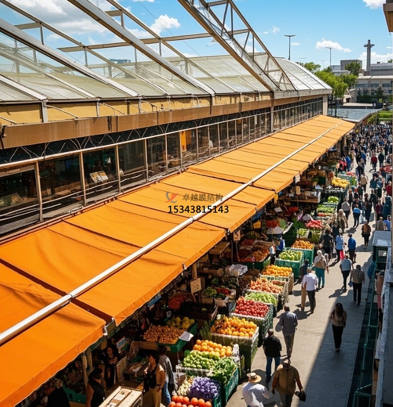 城市中心傳統(tǒng)農(nóng)貿(mào)市場改造:在城市核心區(qū)域,土地資源緊張,傳統(tǒng)農(nóng)貿(mào)市場設(shè)施陳舊、空間局促。膜結(jié)構(gòu)改造方案通過拆除原有老舊頂棚,搭建輕巧、美觀的膜結(jié)構(gòu)頂棚,能在不增加過多占地面積的情況下,優(yōu)化市場空間,提升采光、通風(fēng)效果,改善購物環(huán)境,同時(shí)保留傳統(tǒng)市場的煙火氣,讓城市記憶與現(xiàn)代功能完美融合,如北京的部分老城區(qū)農(nóng)貿(mào)市場改造項(xiàng)目,就借助膜結(jié)構(gòu)實(shí)現(xiàn)了華麗轉(zhuǎn)身,重新煥發(fā)生機(jī)。