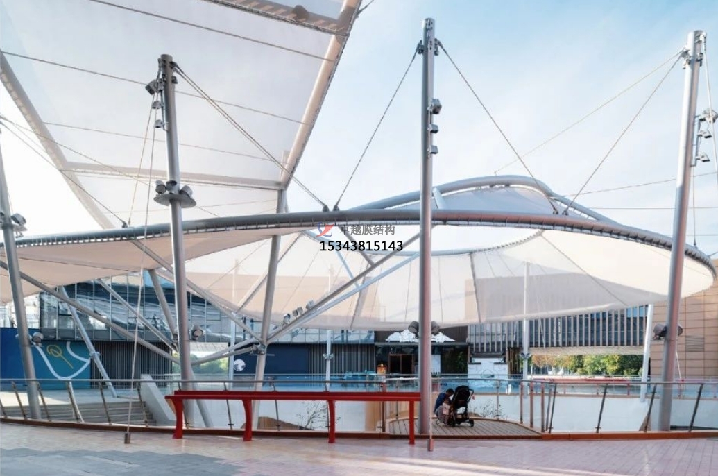 但不管怎么有格調(diào)的下沉式商業(yè)。廣場,它也是一個半露天的公共空間,如果缺乏遮陽避雨設施,無法提供更加舒適的休閑環(huán)境,因此,在下沉廣場上方增設頂蓋是非常必要的,而且一個兼具美觀、時尚、實用的頂蓋也是建筑的加分項。