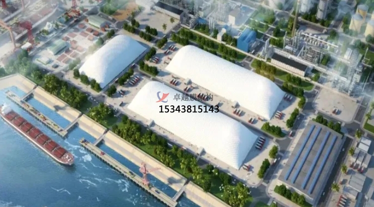 目前我國年吞吐量在1000萬噸以上的沿海港口和200萬噸以上的內(nèi)河港口占全國港口的1/3。而港口發(fā)展中所用到的煤炭、物料、煤矸石、煤堆、水泥白灰等生產(chǎn)原料造成的揚塵污染,給當?shù)厣鷳B(tài)及居住環(huán)境造成了嚴重破壞。而全封閉氣膜倉儲結(jié)構(gòu)在港口碼頭堆場中的應用,不但能有效幫助港口企業(yè)實現(xiàn)環(huán)保與經(jīng)濟并存的雙贏局面,還將促成我國港口形成綠色生態(tài)新發(fā)展格局。