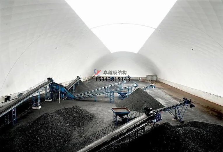 氣膜倉儲建造成本比傳統(tǒng)建筑約節(jié)省近50%的建造成本費用,配套“智能抑塵系統(tǒng)+高效粉塵捕捉劑”的使用可以實現(xiàn)全部粉塵無需向外排放,達到在棚內(nèi)即可治理的零排放標準。