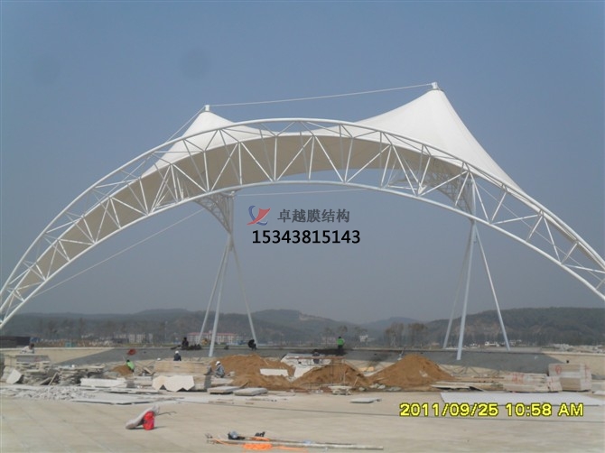 5、結(jié)構(gòu)穩(wěn)定,張拉膜結(jié)構(gòu)不是剛性的,其在風(fēng)荷載或雪荷載的作用下會產(chǎn)生變形。膜結(jié)構(gòu)通過變形來適應(yīng)外荷載,在此過程中荷載作用方向上的膜面曲率半徑會減小,直至能更有效抵抗該荷載。鄭州卓越膜結(jié)構(gòu)工程有限公司專業(yè)做膜結(jié)構(gòu)大門。