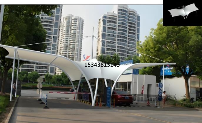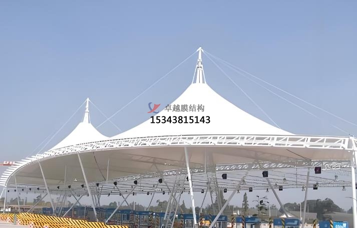 膜結(jié)構(gòu)出入口類型:地下車庫膜結(jié)構(gòu)出入口,大門膜結(jié)構(gòu)出入口,停車場出入口膜結(jié)構(gòu)收費亭。地下車庫膜結(jié)構(gòu)出入口的功能是替代傳統(tǒng)雨棚,遮陽擋雨,提升車庫實用性。優(yōu)點則是可拆裝重復(fù)使用(綠色環(huán)保)、自潔性強(雨水沖洗即可清潔)、抗老化(壽命 15 年以上),主要應(yīng)用場景為住宅、商場、交通樞紐的地下車庫。大門膜結(jié)構(gòu)出入口的功能是兼顧遮陽防雨與景觀裝飾,提升建筑形象。優(yōu)點是造型新穎(如流線型、雕塑感設(shè)計)、透光性好(減少照明能耗)、自重輕(抗震性強)。應(yīng)用場景通常是小區(qū)、景區(qū)、學校、商業(yè)綜合體的主入口。停車場出入口膜結(jié)構(gòu)收費亭的功能是作為收費管理設(shè)施,兼具功能性與美觀性,優(yōu)點則是施工快捷、大跨度無柱設(shè)計、抗風抗雪能力強。應(yīng)用場景通常是公路收費站、景區(qū)停車場、物流園區(qū)。
