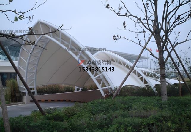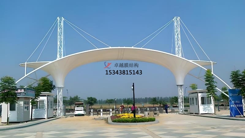 膜結(jié)構(gòu)出入口是一種以高強度膜材料與支撐結(jié)構(gòu)(鋼索、鋼架等)結(jié)合的建筑形式,具有輕盈、美觀、耐用等特點,廣泛應(yīng)用于各種場所的建筑形式,主要用于提供遮陽、遮雨的功能,同時具有較高的觀賞性和藝術(shù)感。