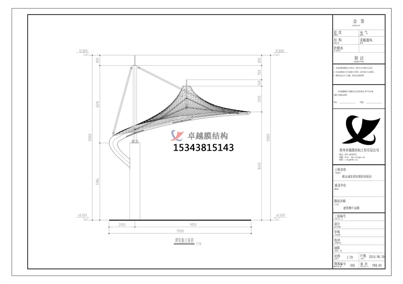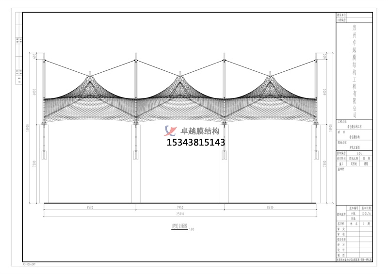 看臺(tái)膜結(jié)構(gòu)設(shè)計(jì)側(cè)面圖。
