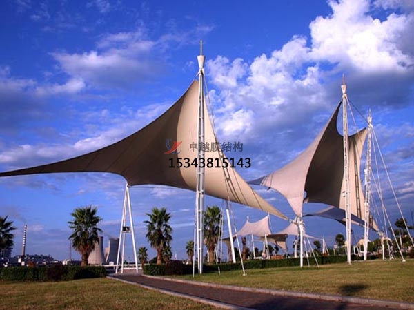 膜建筑可廣泛應(yīng)用于大型公共設(shè)施:體育場館的屋頂系統(tǒng)、機(jī)場大廳、展覽中心、購物中心、站臺等,又可以用于休閑設(shè)施、使用工業(yè)設(shè)施及標(biāo)志性或景觀性建筑小品等。