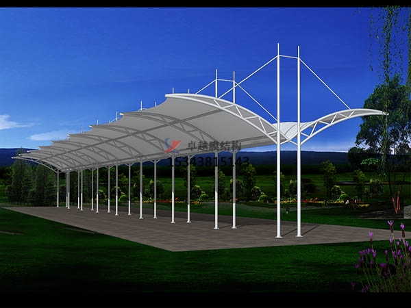 20世紀(jì)60年代,玻璃纖維織物膜技術(shù)得到發(fā)展,并在較大范圍應(yīng)用,但表面涂層材料仍為聚乙烯基類(lèi)。平頂山膜結(jié)構(gòu)車(chē)棚膜材強(qiáng)度較高、模量大、徐變小,但工程自潔性、耐久性仍不理想。