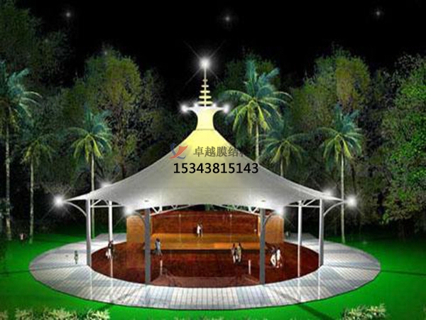 第三點(diǎn),膜結(jié)構(gòu)舞臺(tái)內(nèi)部采用Φ38鍍鋅圓管與車棚框架焊接,加強(qiáng)棚頂部強(qiáng)度,可讓棚內(nèi)感覺寬敞明亮,停靠車輛輕松方便,完全符合舞臺(tái)制作要求規(guī)范;
