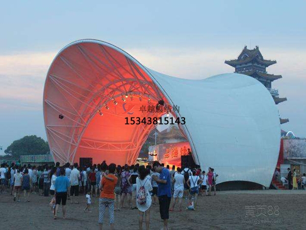 膜結(jié)構(gòu)舞臺是膜結(jié)構(gòu)材料近年來應(yīng)用的一個新領(lǐng)域,膜結(jié)構(gòu)建筑能很好的籠罩全部的舞臺,膜結(jié)構(gòu)的張拉樣式使得建筑的空間跨度變的更大,同時能縮小建筑的結(jié)構(gòu),建筑的整體重量減輕,這樣施工就會變的簡單安全。這些都是膜結(jié)構(gòu)被廣大用戶選擇的關(guān)鍵因素。膜材的表面都有一種涂層,涂層是為了預(yù)防灰塵雨水的影響,起到保護(hù)膜結(jié)構(gòu)使用年限的作用。