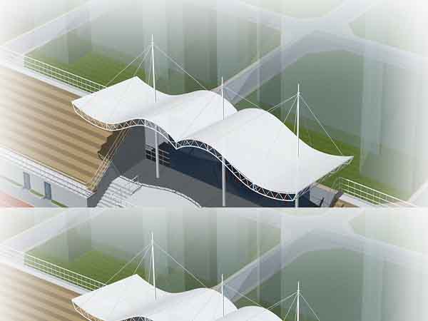 柔性材料具有透光和防紫外線功能,在一些室外建筑和環(huán)境小品中得到廣泛的應(yīng)用。正是由于這一特征,夜間的燈光設(shè)計使膜結(jié)構(gòu)具有鮮明的環(huán)境標(biāo)志特征。 優(yōu)美造型的膜材,不銹鋼配件和緊固件加上設(shè)計輕巧合理,表面處理嚴(yán)格的鋼結(jié)構(gòu)支撐,塑造出形式美觀,設(shè)計合理的膜結(jié)構(gòu),在當(dāng)今世界范圍內(nèi)的建筑環(huán)境設(shè)計中占有舉足輕重的地位。