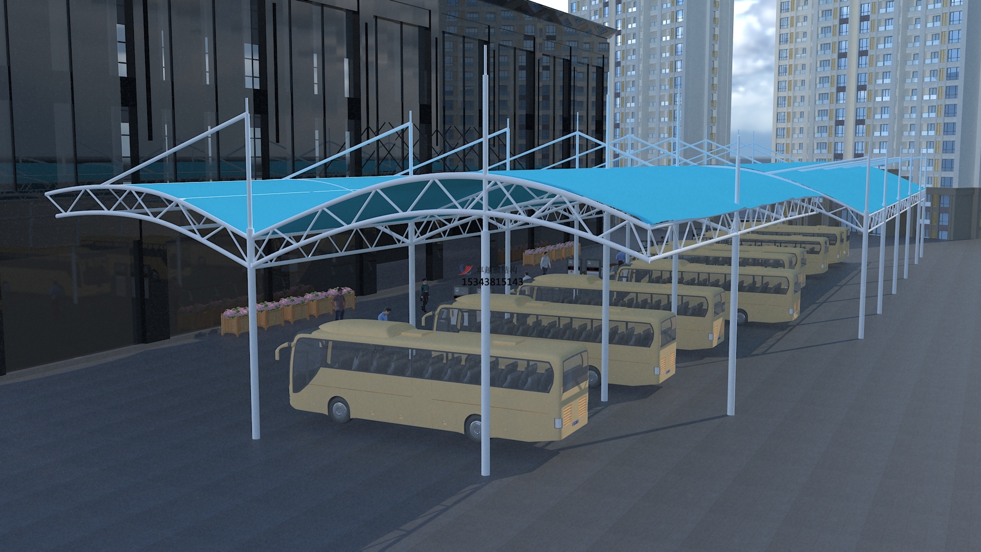 公交大巴膜結(jié)構(gòu)停車棚效果圖