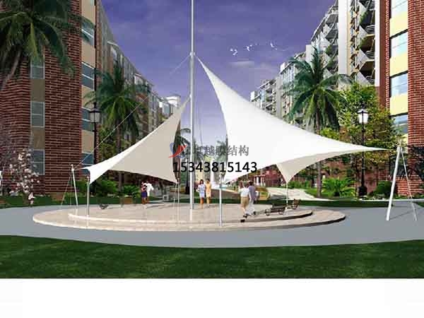 膜結(jié)構(gòu)景觀打破傳統(tǒng)建筑風(fēng)格,可結(jié)合各種自然條件,發(fā)揮設(shè)計(jì)師想象,設(shè)計(jì)成各種別致的曲面造型,頗具藝術(shù)色彩。