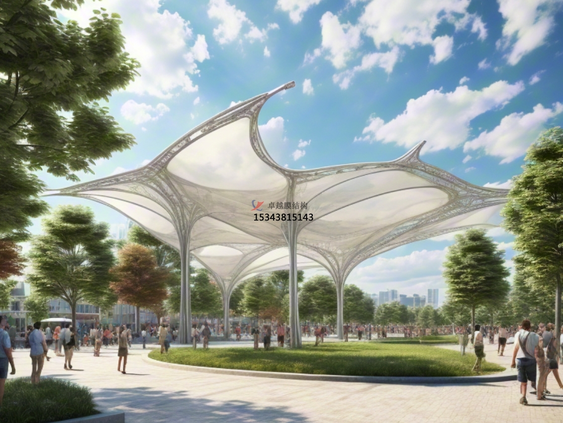 廣場與公園中的膜結(jié)構(gòu),不僅是現(xiàn)代城市空間的一道亮麗風景線,更是城市文化與生態(tài)理念的完美融合。它們以其輕盈的體態(tài)、多樣的形態(tài)和出色的性能,為城市空間注入了新的活力與魅力。我們有理由相信,在未來的城市發(fā)展中,膜結(jié)構(gòu)將繼續(xù)以其獨特的魅力,引領(lǐng)城市空間設(shè)計的潮流,為市民創(chuàng)造更加美好、舒適、綠色的生活環(huán)境。