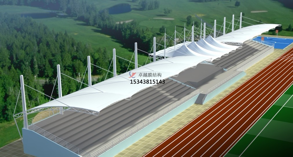 張拉膜看臺(tái)主要用于各類地方體育場主席臺(tái)雨棚,各類學(xué)校體育場看臺(tái)雨棚遮蓋,我公司是國內(nèi)較早從事大懸挑張拉膜結(jié)構(gòu)看臺(tái)設(shè)計(jì)施工的專業(yè)廠家,下面介紹一下我們在桐柏縣周邊縣市完工的一些張拉膜看臺(tái)設(shè)計(jì)施工案例,我公司先后在桐柏縣周邊承接了桐柏縣第高級(jí)中學(xué)膜結(jié)構(gòu)看臺(tái)雨篷/主席臺(tái)/舞臺(tái)安裝雨棚、桐柏縣第初級(jí)中學(xué)張拉膜張拉膜看臺(tái)罩棚、桐柏縣方樹泉中學(xué)校等設(shè)計(jì)施工項(xiàng)目,簡介如下: