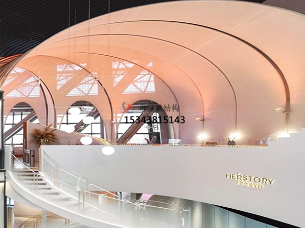 場(chǎng)館看臺(tái)膜結(jié)構(gòu)材料特性與選擇:其材料具有高透光性與自潔功能、耐久性保障。材料采用ETFE膜(0.25毫米厚)或PTFE涂層玻璃纖維膜,透光率可達(dá)40%-60%,減少人工照明依賴,同時(shí)表面防護(hù)涂層使雨水沖刷即可保持清潔。部分場(chǎng)館使用PVC材料,兼具抗紫外線、阻燃及耐候性,適用于多種氣候環(huán)境。通過抗風(fēng)壓、抗雪荷載及防火測(cè)試,并結(jié)合鋼索網(wǎng)或鋼結(jié)構(gòu)框架提升穩(wěn)定性。材料選擇注重環(huán)保性,如ETFE膜可回收,符合綠色建筑趨勢(shì)。