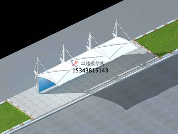 膜結(jié)構(gòu)雨棚是一種全新的建筑結(jié)構(gòu)形式,它集建筑學(xué)、結(jié)構(gòu)力學(xué)、精細化工與材料科學(xué)、計算機技術(shù)等為一體,具有很高技術(shù)含量。其曲面可以隨著建筑師的設(shè)計需要任意變化,結(jié)合整體環(huán)境,建造出標志性的形象工程。