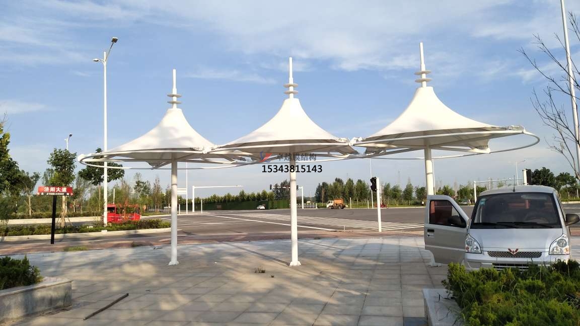 6、膜結構景觀具有結構牢固、外觀新穎,經濟適用,適用壽命長,節(jié)能環(huán)保等優(yōu)點。深受廣大用戶的一致好評,卓越所有工程全部都是通過專業(yè)3D3S膜結構軟件計算通過,結構安全,質量可靠。