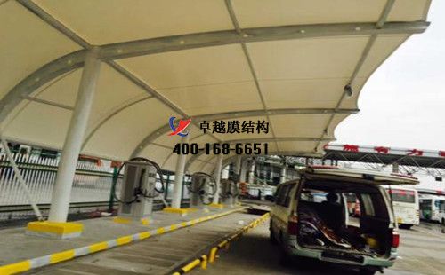 膜結構充電站樁車棚設計、施工案例,我們在長沙承接了長沙市公共交通有限公司、長沙飛升新能源科技有限公司、長沙南站