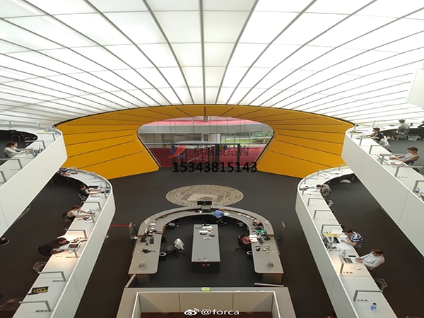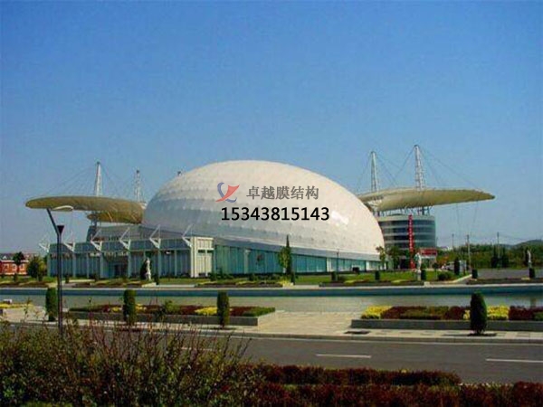 近年來,隨著建筑空間觀念的日益深化以及科學(xué)手段的不斷提高,"回歸自然"、"沐浴自然之溫馨"已是現(xiàn)代建筑環(huán)境學(xué)發(fā)展的主流。室內(nèi)外的視線越來越模糊,出現(xiàn)了許多亦內(nèi)亦外、相互滲透的不定空間,如:大廳裝飾、天井、四季廳、動(dòng)植物園、公園廣場、觀景臺、舞臺、體育場館、體育看臺、文化娛樂場所等。由于膜材的光透性,白天陽光可以透過膜材形成慢射光,使膜覆蓋空間內(nèi)達(dá)到和室外幾乎一樣的自然效果,因此膜結(jié)構(gòu)能創(chuàng)造出與自然環(huán)境相媲美的空間形式。